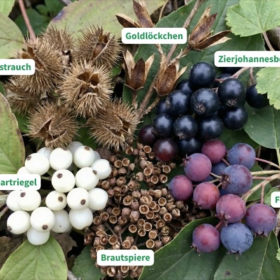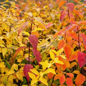 Sommergrün, im Herbst gelb, orange bis rot (besonders ausgeprägt bei Felsenbirne und Hartriegel)